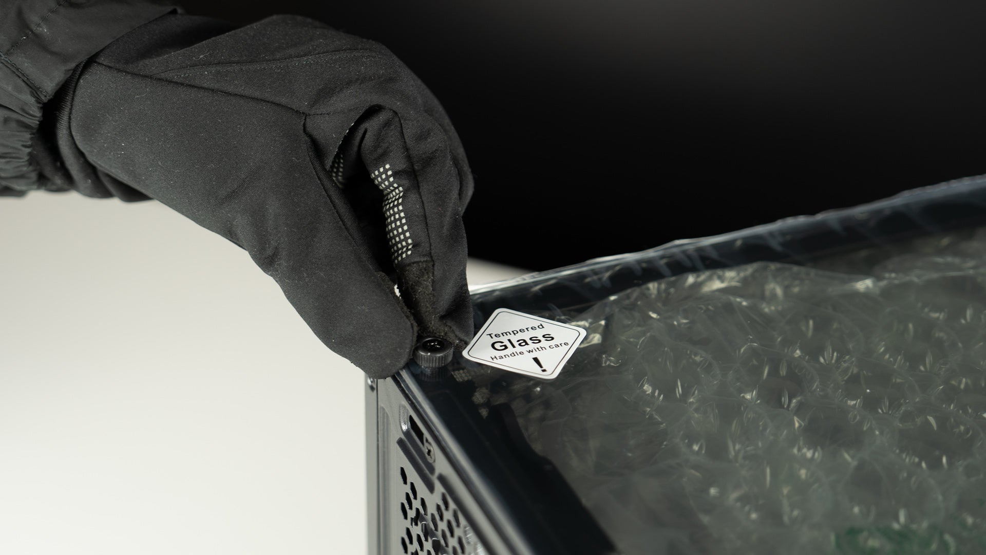 After receiving the computer, unpack the box, place the computer on a flat surface, and unscrew the glass panel screws.