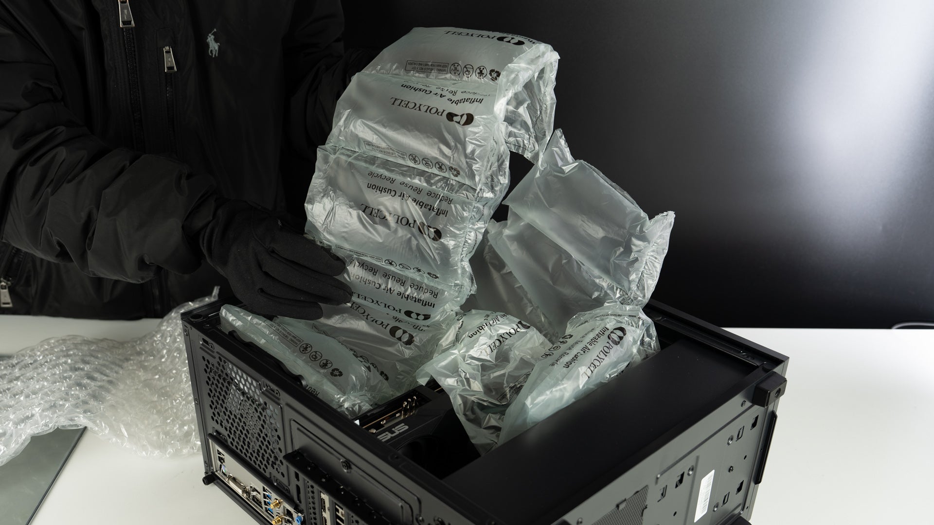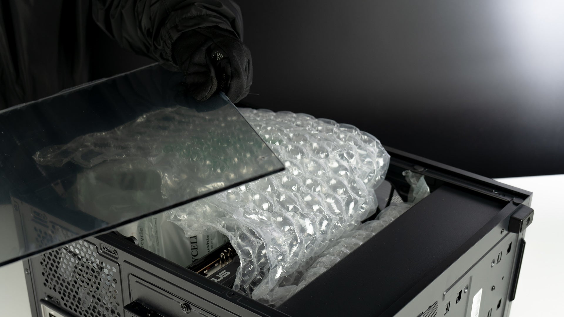Carefully take out any foam, plastic, or other packing materials from inside the computer case.